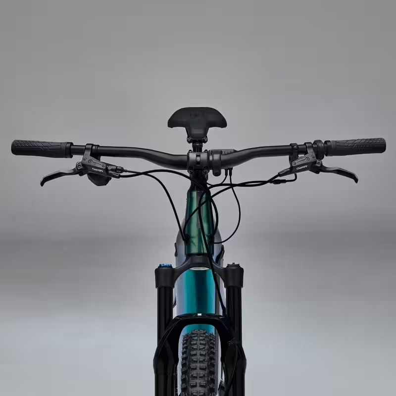 Peso: 21,7 kg (talla M sin pedales) Motor de rueda trasera: 42 Nm Batería: 380 Wh Conectividad: Aplicación móvil DECATHLON RIDE Material del cuadro: Aluminio Tipo: Rígida Tamaño de la rueda: 27,5" Recorrido de la horquilla: 100 mm Transmisión: 1x08 Frenos: Disco mecánico Tija de sillín: Fija Garantía del cuadro, manillar y potencia: De por vida