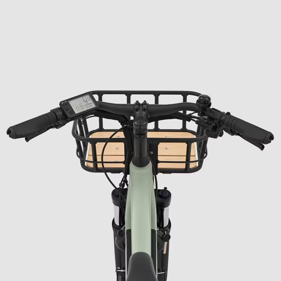 La cesta delantera fijada al cuadro soporta un peso de 10 kg. Dimensiones internas: Largo: 37 cm / Ancho: 25 cm / Alto: 12 cm