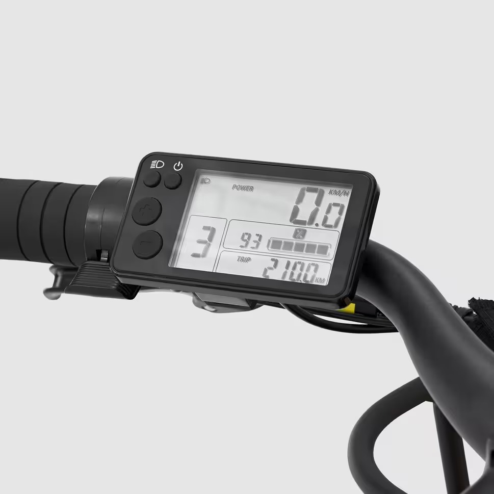 Hay una pantalla LCD de control justo al lado del manillar izquierdo. Mantenga las manos en el manillar y elija entre los tres modos de asistencia disponibles: Eco, Normal y Power.